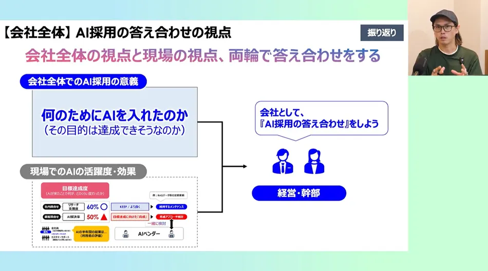 AIも人と同じように、導入(採用)したら終わりではありません。AIも適切に評価と育成をしていく事が大事です。AIの評価と育成の方法や会社としての答え合わせの方法をお伝えします。