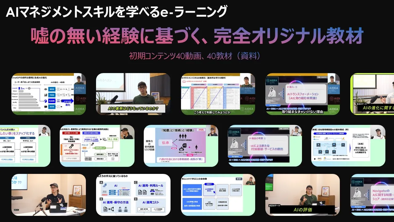 私たちが掲げる「AI教育の民主化」とは、限られた専門家だけでなく、すべてのビジネスパーソンがAIを理解し、日々の業務や意思決定に活かせるようになることを意味します。AIDEAは、その実現に向けて、わかりやすく・実践的で・継続可能な教育の仕組みを提供し、組織全体のAIリテラシー向上を支援しています。